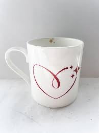Each mug is created by hand from fine china and finished with white gloss. It is created by hand and fired in our kilns here in Ireland making it both dishwasher and microwave safe.